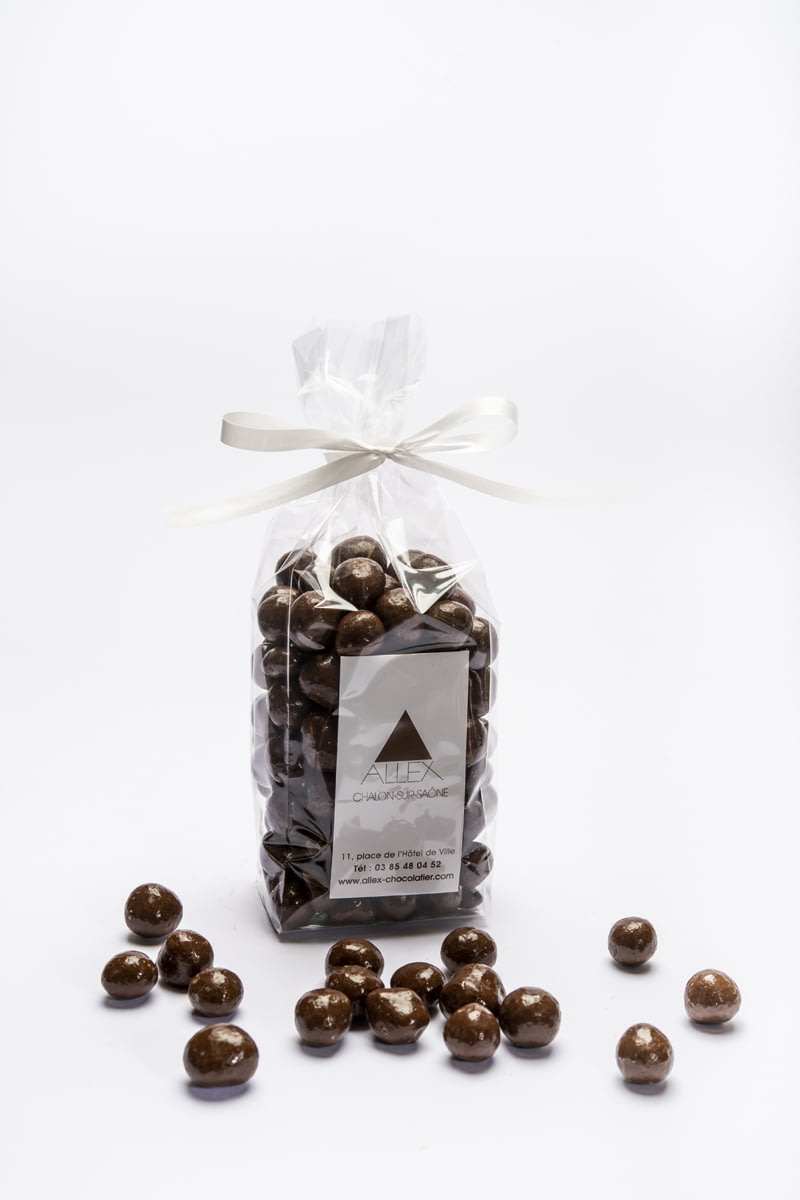 Sachet de 250 Gr de noisettes du Piémont grillées et caramélisées, enrobées chocolat lait